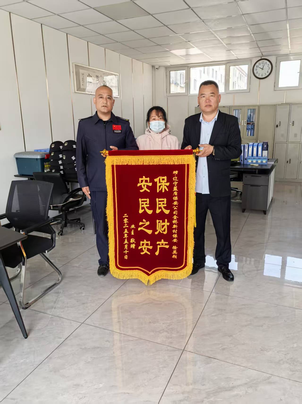 此次事件,不仅彰显了保安人员敬业的高尚品质,更体现了辽宁蓝盾恪守职业规范和严格管理的企业文化,充分的体现了我辽宁蓝盾保安人员的专业性和责任心,这与平时公司的培训和管理是分不开的,面对任何突发事件,我们的安保人员都能做到及时合理有效的处理,确保我们所有服务对象生命财产的安全无误。我辽宁蓝盾保安服务有限公司为社会各界,都提供了坚实有力的保障。这次事件业主特此对我辽宁蓝盾敬献锦旗,以此表示感谢!