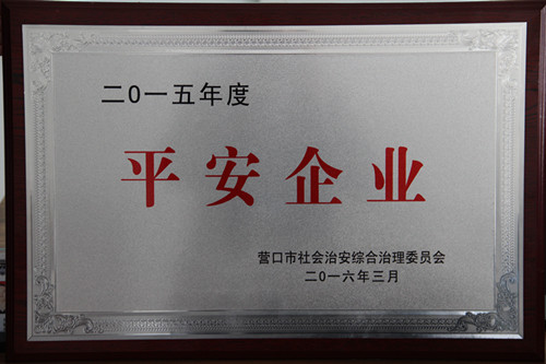 营口蓝盾荣获2015年“平安企业”荣誉称号